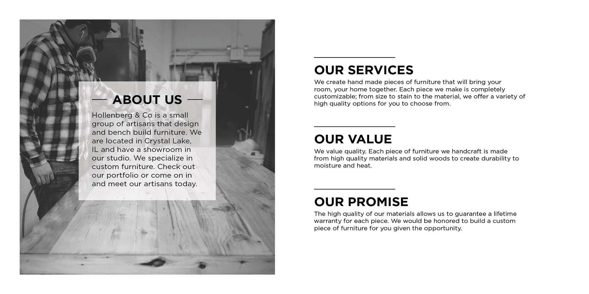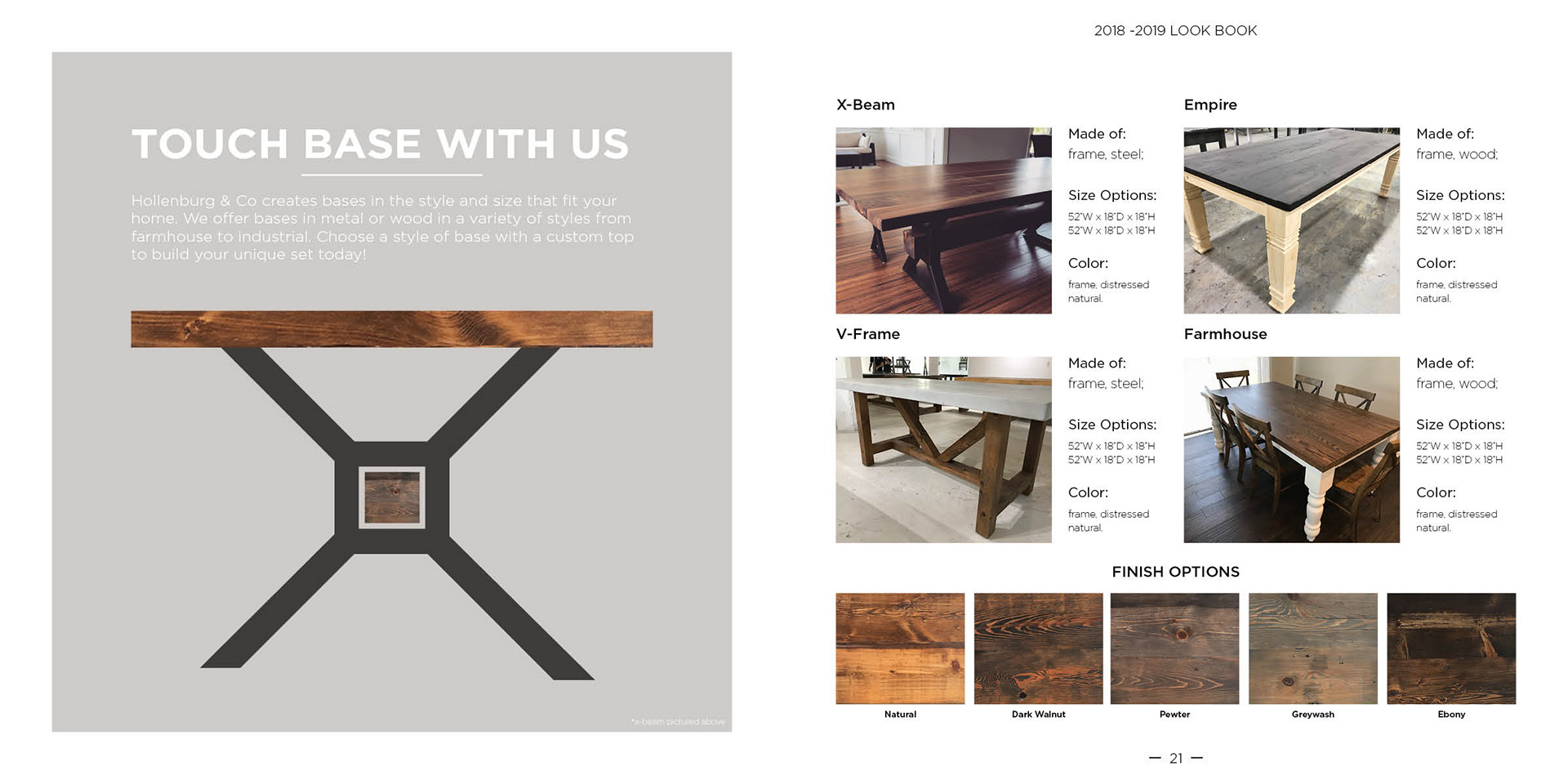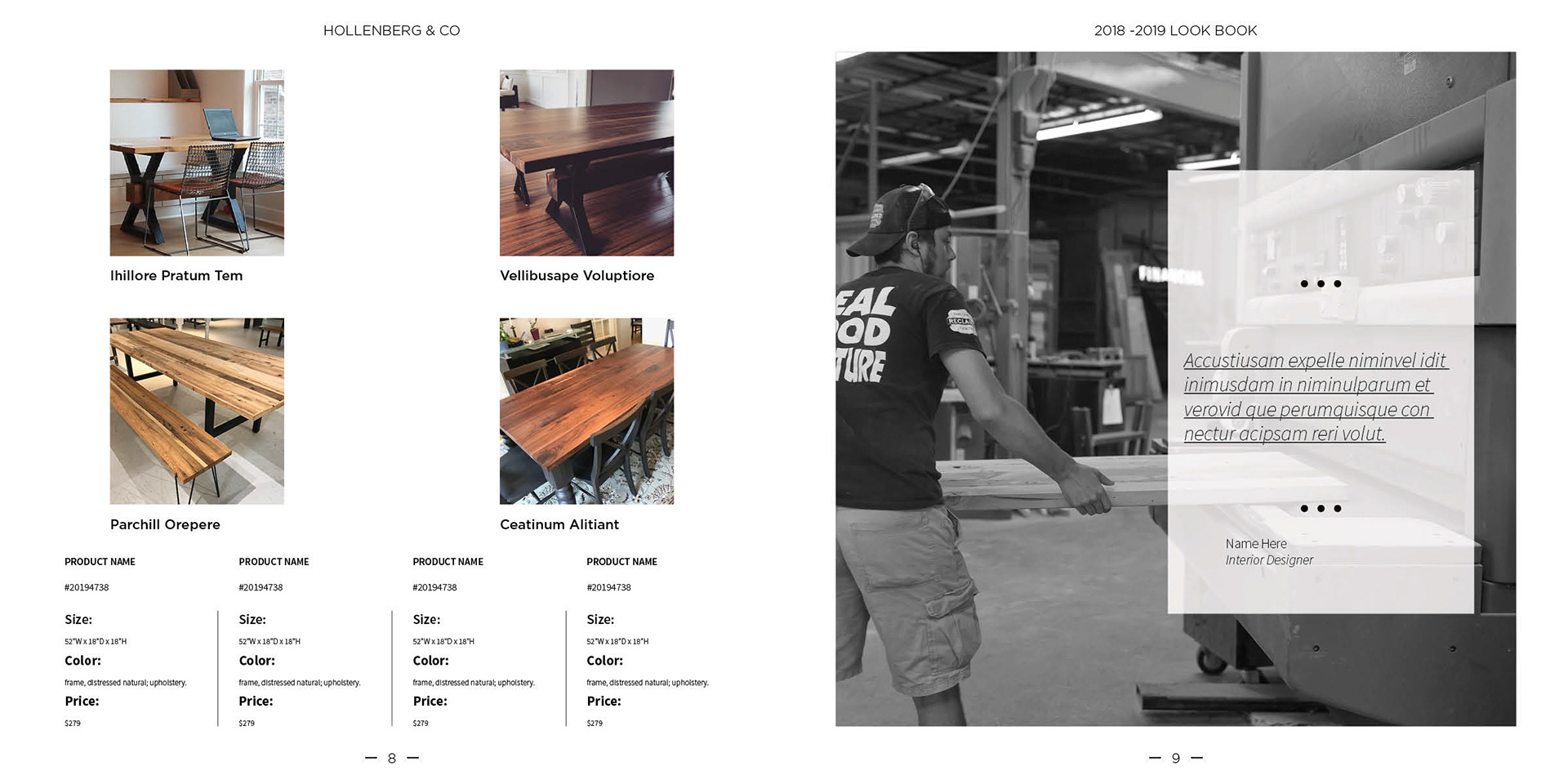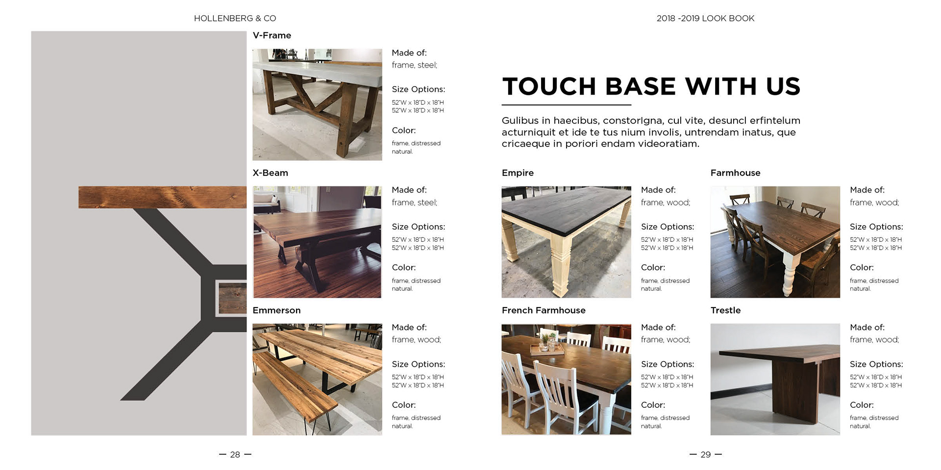 Hollenberg & Co is a small group of artisans that design and build furniture. Already having a logo they needed to apply that brand across business cards and a lookbook.
